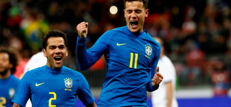 Coutinho y Paulinho anotaron en el amistoso de Brasil contra Rusia