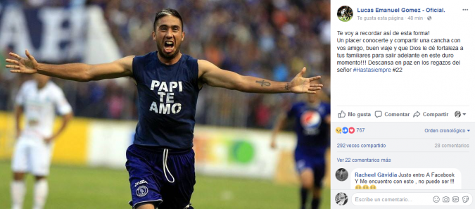 Rubilio Castillo escribió: «Hermano Dios te tenga en su santo seno, te nos adelantaste pero, para mi fue un placer conocerte y hacernos compañeros y hermanos por el fútbol, no lo puedo creer, pero estás en un mejor lugar #22 Siempre estarás en cada rincón de los corazones de nosotros y Motaguenses.»