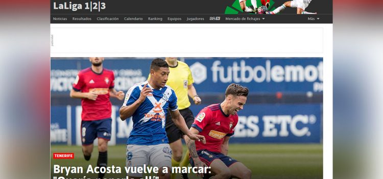 “Quería ponerla allí”, fue la respuesta de Bryan Acosta a Diario As de España tras marcar un golazo en la victoria de Tenerife sobre el Osasuna.