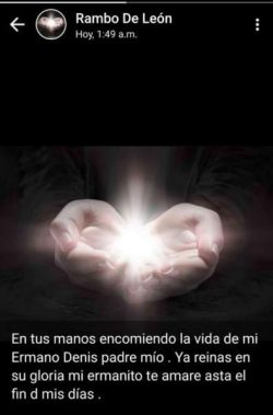 «En tus manos encomiendo la vida de mi hermano Denis, padre mío», escribió Rambo en su cuenta de Whatsapp. «Ya reinas en su gloria mi hermanito, te amaré hasta el fin de mis días», añadió.