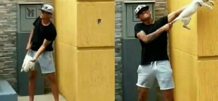Barreto es quien estira las extremidades del felino mientras se ríe y Quero fue el encargado de grabarlo todo. Ambos fueron denunciados por ASODEPA, organización defensora de los animales.