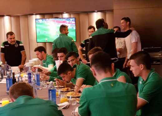 El crack visitó a los jugadores del Sporting de Lisboa para desearles suerte previo al encuentro de la Europa League ante el Atlético