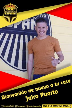 Jairo Puerto futbolista hondureño vuelve al fútbol hondureño, esta vez vistiendo la camisa donde inicio su carrera de jugador el Real España, los aurienegros hacen su primer fichaje de cara al próximo torneo.
