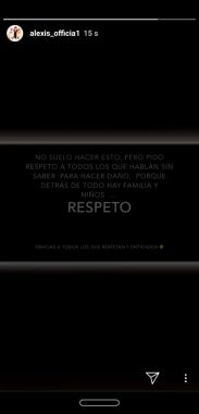 «No suelo hacer esto, pero pido respeto a todos los que hablan sin saber para hacer daño, porque detrás de todo hay familia y niños… Respeto. Gracias a todos los que respetan y entienden», añadió.