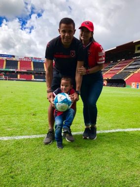 El primer triplete de Roger Rojas en el fútbol costarricense tuvo una dedicación especial, el pequeño Roger Francisco,a quien su papá le regaló el balón del juego.