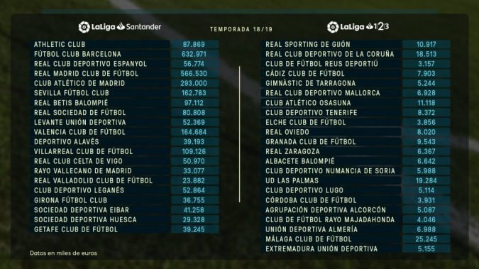 La Liga española ha hecho oficial los límites salariales de los 42 equipos que conforman la Primera y la Segunda División. El organismo presidido por Javier Tebas han explicado los criterios para determinar el importa máximo que cada equipo puede gastar durante esta temporada 2018.2019.