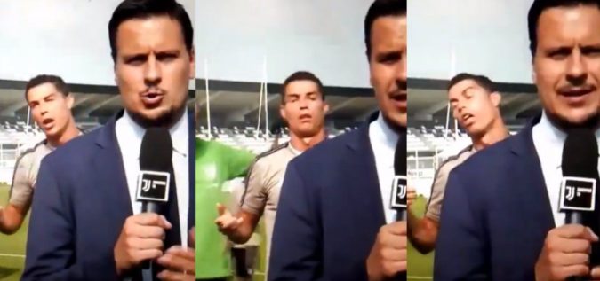 Cristiano Ronaldo se quiso poner simpático en la práctica de la Juventus, pero le salió un poco contraproducente tras burlarse de un reportero ante las cámaras.