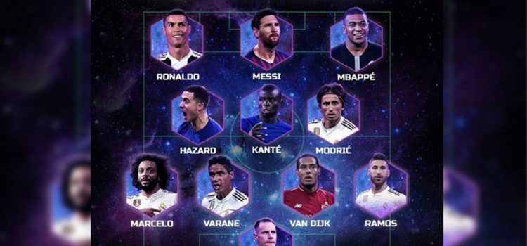 Los jugadores de la liga española y la Premier League de Inglaterra dominan este once con la única presencia del francés Kylian Mbappé, del París Saint-Germain y el portugués Cristiano Ronaldo de la Juventus, como únicos futbolistas de equipos de otros países.