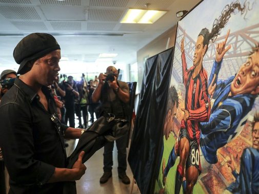 Ronaldinho, quien no había visto los cuadros hasta el momento de la inauguración, se mostró visiblemente emocionado y agradeció a Camaleao el trabajo. «Es difícil encontrar palabras para describir todo lo que me está pasando en mi carrera después de dejar el fútbol, es toda una sensación volver al Maracaná», afirmó.