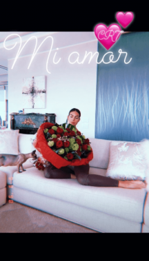 Georgina Rodríguez compartió una imagen en su historia de Instagram donde aparece con un enorme ramo de rosas rojas que le regaló su pareja Cristiano Ronaldo, tras el hat-trick que le marcó al Atlético de Madrid y que significó el pase de la Juventus a cuartos de final de la Champions League.