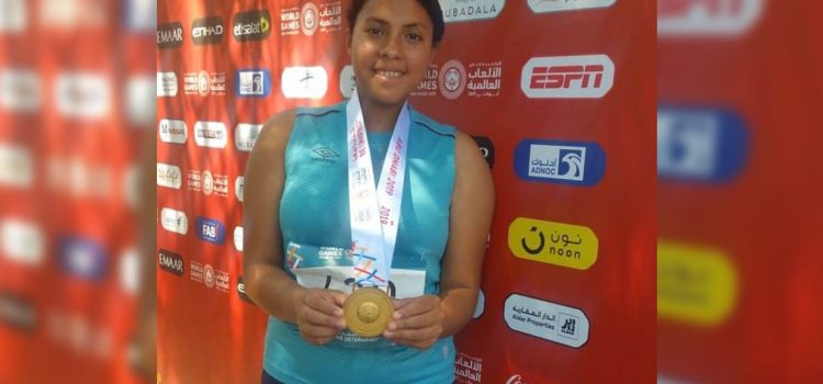La atleta hondureña Eufemia Jackelyn Velásquez Fúnez conquistó una medalla de oro en la categoría de Salto Largo de Atletismo en las Olimpiadas Especiales del Mundial de Abu Dhabi, en Emiratos Árabes.