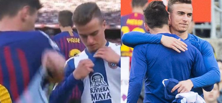 Adrian Giner Pedrosa, de 20 años y con un debut reciente como titular en la primera división española, nunca se imaginó que pedirle a Lionel Messi su camiseta al término del derbi que ganó el Barcelona al Espayol, lo condenaría.