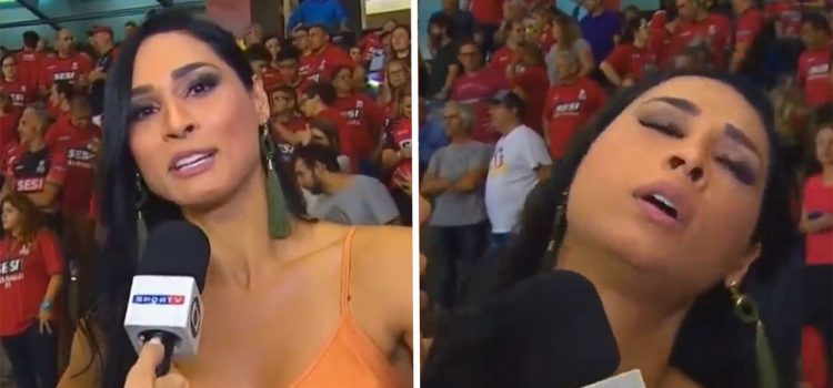 La doble campeona olímpica con la selección de Brasil, Jacqueline Carvalho, fue protagonista de un desafortunado episodio mientras era entrevistada por el canal televisivo Sportv 2 durante la final de la Superliga masculina entre Sesi SP y Taubaté.