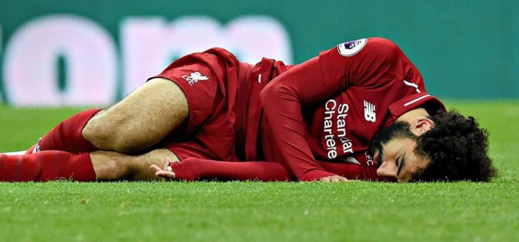 Salah tuvo que abandonar el terreno de juego del St. James Park en camilla en la segunda parte tras sufrir un golpe en la cabeza por un choque con Martin Dubravka.