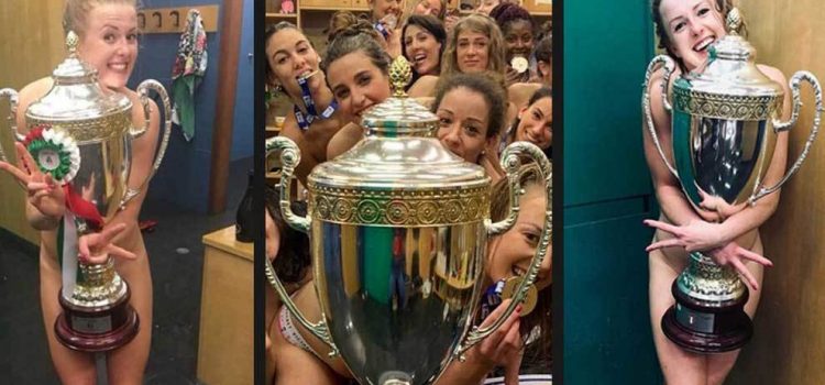 Tras la victoria por 3-2 ante el Igor Gorgonzola Novara que les dio el título en la liga de Italia, todas las jugadoras del Imoco Volley regresaron al vestuario para desnudarse por completo y tomarse una foto junto al trofeo.