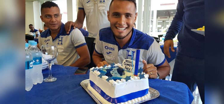 El centrocampista de la Liga Deportiva Alajuelense de Costa Rica se mostró sorprendido por el pastel que tenía la Bandera de Honduras y era de color azul y blanco. Sus compañeros y cuerpo técnico le cantaron el tradicional «Happy Birthday».