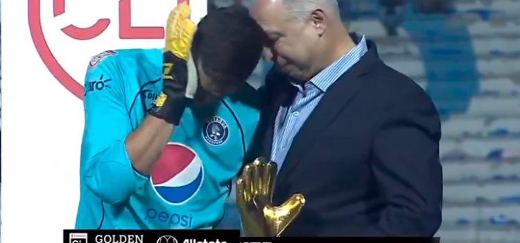 El argentino recibió el premio como mejor arquero de la Liga Concacaf y se le salieron las lágrimas junto al presidente Eduardo Atala