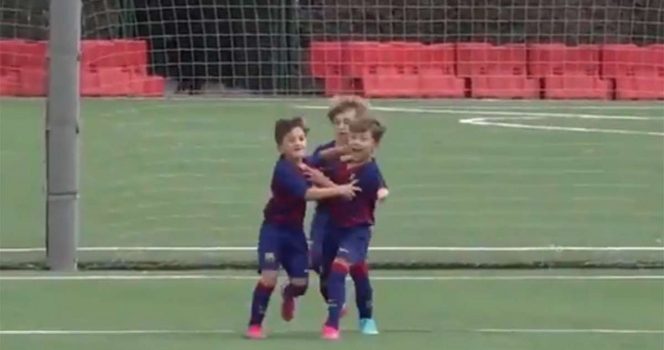 Esta vez no fue el astro del fútbol Lionel Messi quien llamó la atención del mundo por uno de sus goles, sino que fue su hijo mayor Thiago defendiendo la camiseta del FCB Escola.