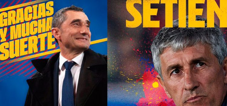 El Barcelona anunció este lunes la destitución de Ernesto Valverde después de dos años y casi ocho meses en el cargo, y con cuatro títulos conseguidos (dos Ligas, una Copa del Rey y una Supercopa de España). Su sustituto será Quique Setién, hasta el 30 de junio de 2022.