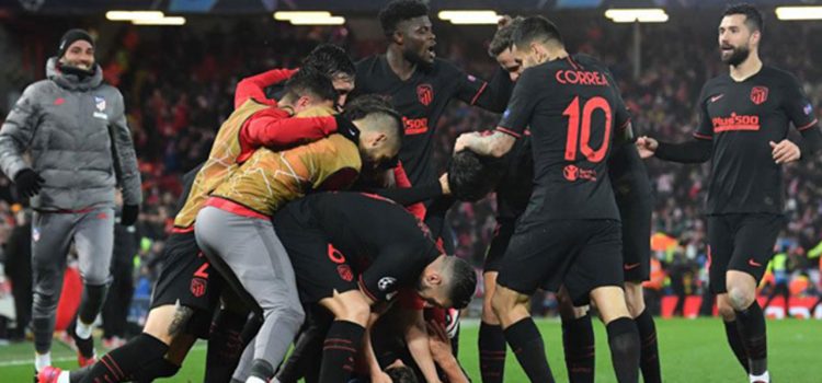 El Atlético de Madrid eliminó de forma sorpresiva al vigente campeón de la Champions League, el Liverpool en su propio estadio. Los Colchoneros ganaron 3-2 tras 120 minutos de juego y se metieron entre los ocho mejores de la competencia.