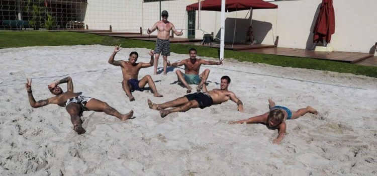 El brasileño se muestra en las fotos que subió a su red social Instagram junto a varios amigos, tomando el sol en una cancha de voleibol y, posteriormente, sentados juntos en un banco, uno al lado del otro.