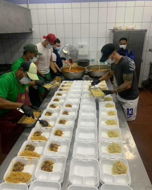 Una vez que la comida estaba lista,tanto los empleados de negocio como los dos jugadores argentinos salieron en el auto del presidente del equipo verdolaga para comenzar con la entrega en los barrios más pobres de la capital industrial.
