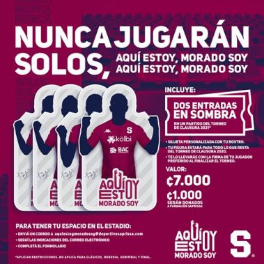 Los seguidores saprissistas que quieren participar deben pagar 7 mil colones que incluyen dos entradas de sombra para el próximo campeonato (Apertura 2021).