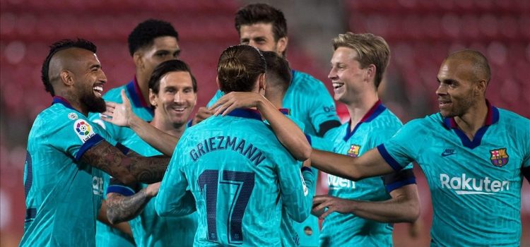 El balón volvió a rodar en la isla tras el confinamiento y tanto el Mallorca como el Barça hicieron lo posible para adaptarse lo mejor posible a la nueva normalidad del fútbol: gradas vacías, rigurosas medidas sanitarias y un partido vital para sus respectivos intereses.