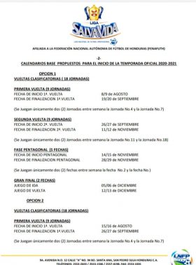 La directiva de la Liga Nacional a través de una circular comunicó a los equipos las propuestas del calendario para el inicio del torneo Apertura 2021, tras clausurarse el anterior debido a la pandemia del COVI-19.