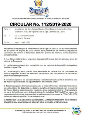 La Liga Nacional también informó que los clubes deben de tener un periodo de preparación de seis a ocho semanas. Y que las fechas propuestas pueden estar sujetas a cambios por las condiciones de salud y seguridad.