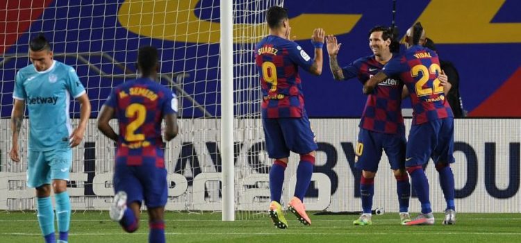 Sigue firme el puntero Barcelona al vencer 2-0 como local al Leganés este martes en la jornada 29 de la Liga de España. También el astro argentino Lionel Messi, que marcó de penal este martes y llegó a su gol número 699.