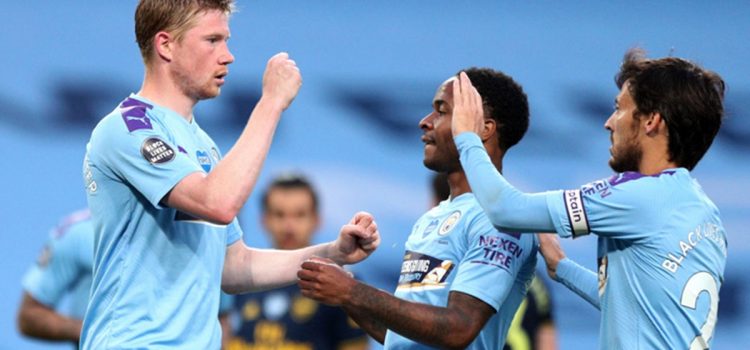 Raheem Sterling (45+2), el belga Kevin de Bruyne de penal (51) y el joven Phil Phoden (90+1) fueron los autores de los goles del equipo de Pep Guardiola, que queda a 22 puntos del Liverpool, con 27 por jugar.