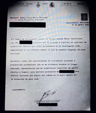 Aquí el documento que mandó Messi al Barcelona:
