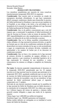 Olimpia, Real España y Lobos de la UPNFM, votaron en contra. Mientras que Real Sociedad, Real de Minas, Marathón, Vida, Platense y Honduras Progreso estuvieron a favor.