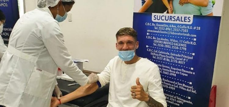 El defensor uruguayo Mathías Techera llegó este miércoles a San Pedro Sula y este día se realizó la prueba del coronavirus paa sumarse a los entrenamientos del Marathón.