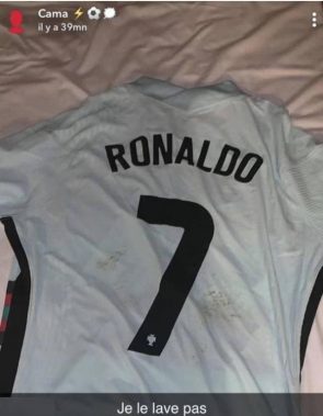 El futbolista del Rennes persiguió al crack de Portugal al final del encuentro para pedirle su camiseta. Lejos de negársela, el crack portugués de la Juventus se la dió el francés se marchó a casa satisfecho con el regalo de CR7, que exhibió en sus redes sociales.