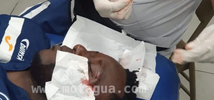 El lateral derecho de Motagua, Wilmer Crisanto terminó el clásico ante Olimpia con la cara rota y cuatro puntadas en su ceja izquierda, herdida provocada por un codazo que le dio Javier Portillo.