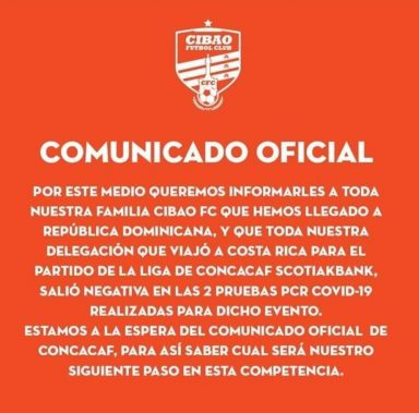 El conjunto de Cibao ya se devolvió a República Dominicana. Ahora habrá que esperar un pronunciamiento oficial de la Concacaf para ver qué pasará con el partido.