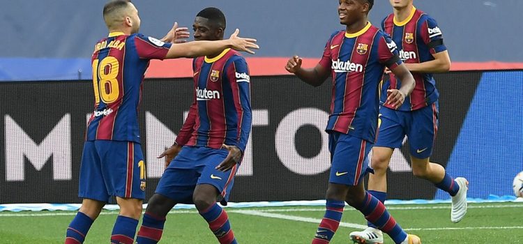 Barcelona: Ter Stegen; Sergi Roberto, Piqué, Lenglet, Jordi Alba; Sergio Busquets (Pjanic, min.85), De Jong; Dembélé (Trincao, min.66), Pedri, Ansu Fati (Messi, min.46); y Griezmann (Braithwaite, min.78).