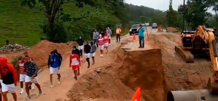 En un vídeo hecho por los jugadores del club, se observa que ellos, incluido el cuerpo técnico que encabeza el español Adrián García, caminan por un paso donde maquinas están trabajando para habilitar el paso y posteriormente lo hace en el autobús.