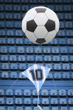 Un minuto de aplausos, un globo pintado de pelota y una cometa con la diez, aludiendo al “barrilete cósmico”, cómo lo bautizó el periodista Victor Hugo Morales cuando Maradona anotó, tras una espectacular apilada de más de 50 metros, el segundo gol ante Inglaterra en México-86.