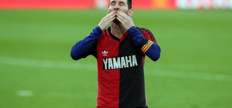 Corría el minuto 73 cuando Messi marcó el cuarto gol de su equipo; un tanto que bien podría haber firmado Diego. A continuación, tras los abrazos de su compañero, desveló su sorpresa para honrar al ‘Pelusa’. Debajo de la camiseta barcelonista llevaba otra del Newell’s de la breve época en que Maradona jugó allí (1993-94), con el «10» y sin escudo. Y lanzó, alzando los brazos y la mirada, un sentido beso al Cielo, mientras en el videomarcador del Camp Nou aparecía otra camiseta del Maradona «rojinegro».