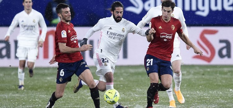 El Osasuna firmó su cuarto empate consecutivo a costa de un Real Madrid que no pudo mostrar su mejor versión en el frío de Pamplona, en un partido por la Liga de España marcado por las pocas ocasiones de gol y por la nieve que no paró de caer sobre el césped de El Sadar.