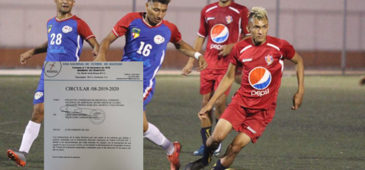 El secretario de la Liga de Ascenso Jaime Irías Rivera ya notificó la determinación a la Fenafuth, comisiones de disciplina, de arbitraje, clubes y prensa deportiva.