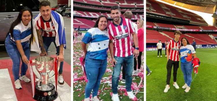 Las fotos de Cerrato, originaria de Teupasenti, El Paraíso, junto a la plantilla del Atlético de Madrid cuando el conjunto Colchonero ganó la Liga la semana pasada fueron publicadas por el periodista de TVC, Rely Maradiaga en su red de Facebook y las mismas se han viralizado en las redes sociales.