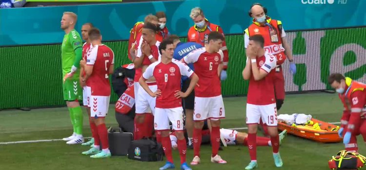 La estrella del conjunto danés se descompensó sobre el cierre del primer tiempo y generó gran conmoción en el estadio. El partido fue suspendido