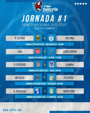 Terminó la espera. Directivos de la Liga Nacional de Honduras y representantes de los clubes afiliados confirmaron las fechas y horario de los partidos que conforman la jornada inaugural del torneo Apertura 2021-2022.