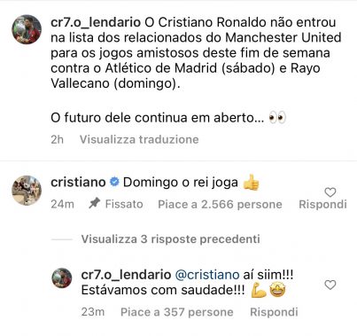 El propio Cristiano Ronaldo confirmó que volverá a jugar el domingo con Manchester United, que recibe a Rayo Vallecano en el marco de un partido amistoso.