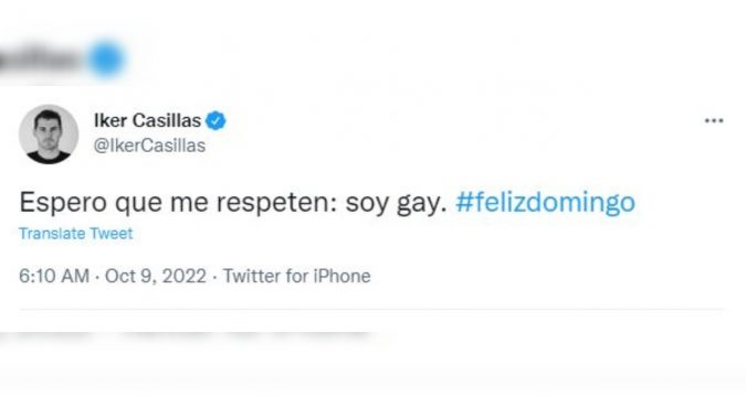 El exportero de la Selección de España y del Real Madrid, Iker Casillas, publicó un tuit en el que se admitía como homosexual. Pero después lo borró.