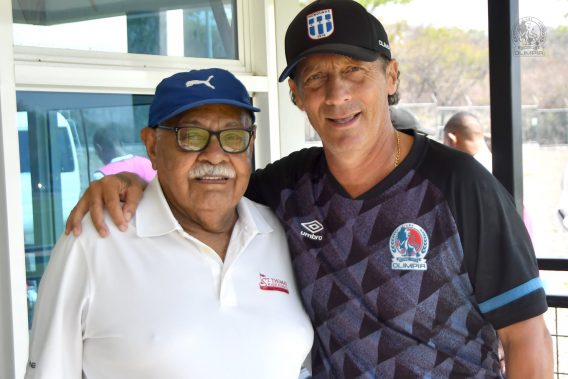 El entrenador argentino Pedro Troglio conoció a Tejeda y supo del papel que desempeñó por décadas en el equipo albo y aprovechó para tomarse una fotografía demostrando que a ambos los une el mismo sentimiento por Olimpia.